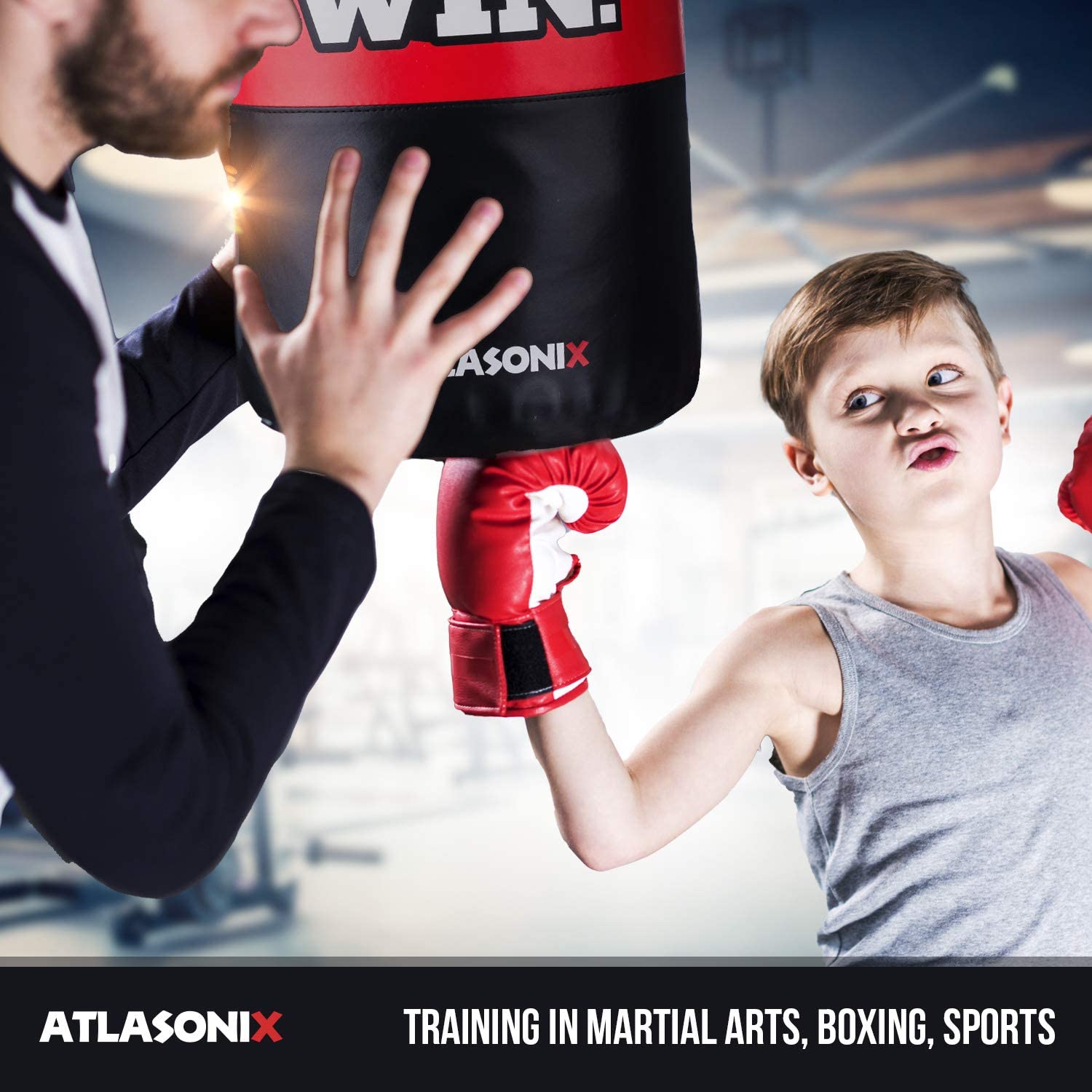 The Ultimate Training Aid - Atlasonix brings you a 2ft length, (3ft with straps) fillable punching bag for kids aged 5-15. Whether training for MMA, Boxing, Karate, Kickboxing, taekwondo or other martial arts, this is the way to go for good health and well-being.
